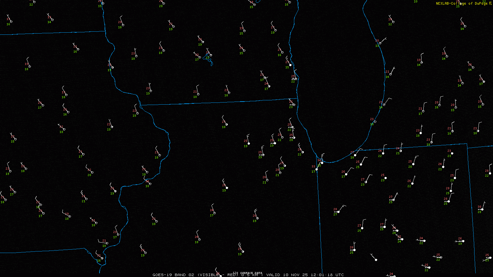 outside of the convective bands, near-surface air remained dry (~20° T/Td spread), resulting in instances of virga, fall streaks, and a minimal snow accumulation across much of cook county, il despite radar returns indicating precipitation aloft. the convective intensity of the dominant band was evident early on 10 november, when lightning was detected near the lakeshore - a clear signal of thundersnow within the mature lake effect plumes.