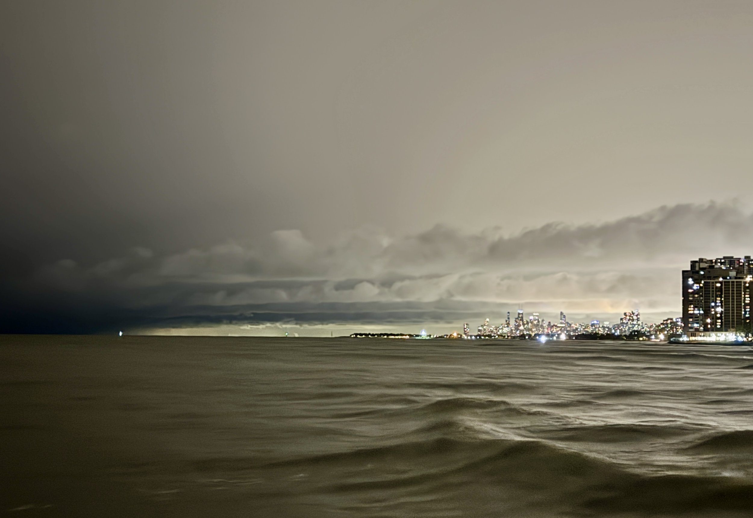 as this cold air mass interacted with the warm lake surface, a mesolow formed over central lake michigan on 9 november. the deepening low enhanced lift and focused convergence, producing the first significant band of lake effect snow that reached the chicago area late that evening. this arcing band as a result of the deepening mesolow brought bursts of heavy snow, reducing visibility, and accumulating rapidly near the lakeshore.